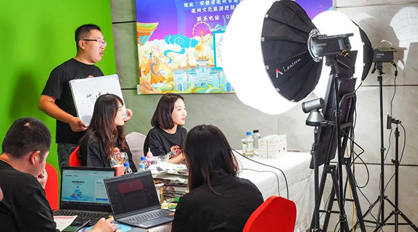 領(lǐng)導(dǎo)一行首先參觀了珍寶島展廳,了解了注射用血塞通、血栓通膠囊、復(fù)方芩蘭口服液、小兒熱速清糖漿等明星產(chǎn)品。隨后,領(lǐng)導(dǎo)一行參觀了“亳州養(yǎng)生”花草茶及大健康產(chǎn)品展、中醫(yī)藥健康旅游產(chǎn)品展、電商企業(yè)產(chǎn)品展、藥膳產(chǎn)品展。其中,電商企業(yè)產(chǎn)品展涵蓋神農(nóng)谷電商直播區(qū)、譙城花茶直播區(qū)、文旅集團(tuán)直播區(qū),現(xiàn)場(chǎng)共計(jì)10多個(gè)直播團(tuán)隊(duì)、60多人現(xiàn)場(chǎng)進(jìn)行直播。