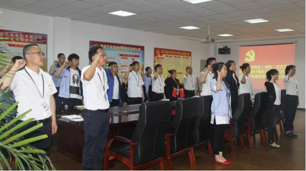 黨員們向面莊嚴、神圣的黨旗,舉起自己的右拳,一起重溫了入黨誓詞。隨后,大家一起觀看了“全國優(yōu)秀共產(chǎn)黨員”廖俊波同志的先進事跡視頻,學習他牢記黨的囑托,盡心盡責、苦干實干的精神,學習他對黨忠誠,心系群眾、忘我工作、無私奉獻的優(yōu)秀品質。黨支部書記號召廣大黨員、干部、職工要向廖俊波同志學習,時刻牢記黨旗下的誓言,不忘初心、扎實工作、廉潔奉公,身體力行把黨的方針政策落實到各個部門、各個車間、各個崗位,一心一意為企業(yè)發(fā)展,一舉一動為質量負責,無愧于“共產(chǎn)黨員”這個稱號。